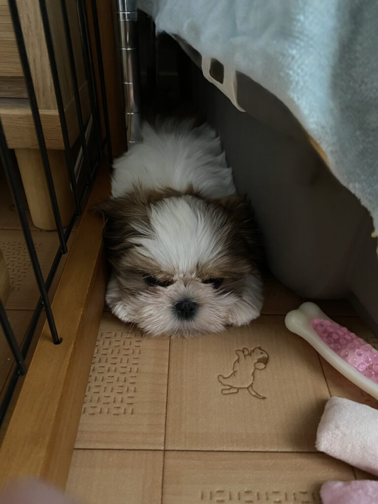 実は、ブリーダーさんから7日はサークルから出さないでくださいと言われていたのに、、あまりのかわいさにお迎え翌日の朝に一度サークルの外に出してしまったんです、、、ちょっとだけのつもりで。